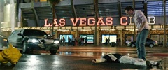 Der zweite spannungstechnische Höhepunkt des Filmes und gleichzeitig einer der witzigsten Stellen des Filmes - das große Zusammentreffen mit Chow in Las Vegas - bietet sowohl Action als auch reichlich komische Momente. Wie immer zeigt Phil, der Anführer der Gruppe, Initiative und Ideenreichtum und ist sich sogar nicht dafür zu schade, sich mit Hilfe von zusammengeknüpften Handtüchern vom Dach des Caesars Palace auf den Balkon von Chows Suite herunter zu lassen. Alan folgt seinem Vorbild Phil natürlich auf dem Fuß, was natürlich nicht ansatzweise so elegant verläuft. Der stößt sich nämlich vom Randstein des Gebäudes ab, statt sich einfach hinunter zu lassen und landet auf dem Neonschild des Hotels. Es geht natürlich alles gut aus, der Weg bis dahin ist dafür sehr spannend inszeniert.