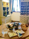 Mitten im Verkaufsraum, der von feinsten Senf-, Pesto- und Ölvariationen beherrscht wird, lässt man sich zum genussvollen Frühstück nieder.