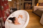Mit einer Maximalbelegung von 120 Gästen hat das Hotel genau die richtige Größe. Zusätzlich zu den 45 Zimmern, die keinen Komfort vermissen lassen, gibt es noch sieben Suiten. Fünf davon sind mit einer eigenen Sauna zusätzlich zu einer frei im Zimmer stehenden Badewanne und offenem Kamin ausgestattet. Der vierte und der