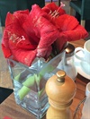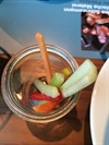 Der Schinken ist fett und grobschlächtig. Die Gemüsesticks wurden vorsichtshalber wohl schon geraume Zeit vor Eintreffen der Gäste geschnitten, denn die Enden verfärbten sich bereits braun. Das machte sie andererseits wieder zu perfekten Partners in Crime für die florale Tischdekoration, die ihren Zenith bereits überschritten hatte und sich farblich ein Beispiel an den Gemüsesticks nahm.