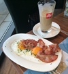 Die Spiegeleier mit gebratenem Speck hatten niemals eine Chance. Das Eiweiß war oben noch glasig, der Speck zu dick, dafür zu kurz angebraten und das ganze hatte einen eigentümlichen Nachgeschmack.