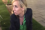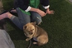 Pete, zuerst zurückhaltend und bellend, schmiegt sich an und lässt sich kraulen, welchen Politiker hatte Nadja Bernhard wohl da im Sinn.