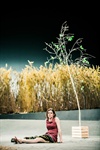 Grauer Boden, der vermutlich fruchtbaren Boden darstellt, nur ohne Gras, kleine Vertiefungen, spärlich mit Wasser gefüllt, und Ähren als einzige Zeugen der Lebendigkeit auf der Bühne – das sind die wichtigsten Dekorationen im ersten Akt von Raimund Orfeo Voigt und Denise Heschl. Einziges Mobiliar ist ein Klappstuhl, auf den Anna Ivanov zwingt und auf den sie selbst im wilden Streit zwischen den Eheleuten von Ivanov hingesetzt wird. Es ist ein Versuch von Anna Petrovna Ivanov festzuhalten. Dass sie ihn sexuell nicht mehr reizt, ist ihr bewusst. Sie merkt auch, dass ihre Tat, sich selbst und ihr eigenes Leben, ihre Überzeugungen als Geschenk für ihren Geliebten aufzugeben, Ivanov nicht mehr reizt. Er will ihr Opfer weiter nicht annehmen, verliert das Interesse an ihr und begibt sich auf die Jagd.
