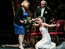 Pia Luise Händler in einem körperbetonten Kleid mit tiefem Ausschnitt, der den Blick auf ihre stark aufgepuschte Oberweite freigibt, spielt exzentrisch und sehr überzeugend die junge Witwe Marfa Jegorovna Babakina. Doch auch ihr fehlt es an Inhalt.